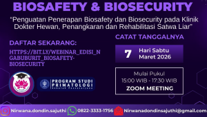 Pada hari Sabtu 7 Maret 2026, ABI mengadakan webinar biosafety dan biosecurity untuk teman teman yang berkecimpung di bidang kesehatan dan kedokteran hewan. Acara ini dipandu oleh ibu Prof Herawati (ketua dewan pengawas ABI) dan ibu Prof Diah (ketua dewan pengurus ABI).